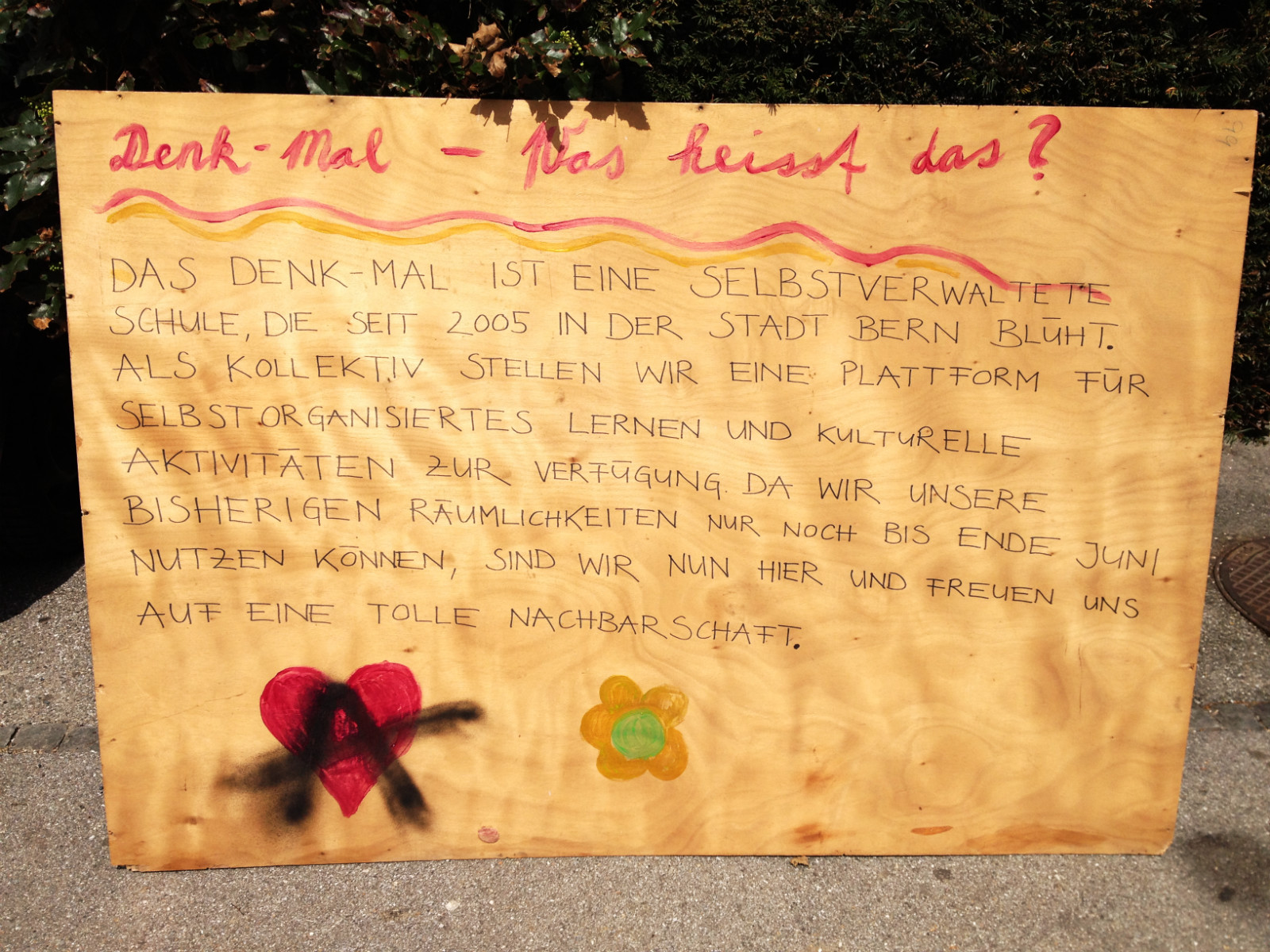 Um die Kurse durchzuführen ist die Schule vor sechs Jahren nach einer Hausbesetzung ein Mietverhältnis eingegangen, das in regelmässigen Abständen erneuert wurde. «Dank der sehr günstigen Miete, die einer Zwischennutzungsform gleichkommt, konnten wir in diesen Jahren kontinuierlich ein niederschwelliges Angebot zur Unterstützung der Integration von MigrantInnen in Bern und Umgebung anbieten», schreibt denk:mal. «Die Stadt profitiert von unserem kostenlosen Angebot. Als Gegenleistung wollen wir Raum!», fordert die Schule deshalb.