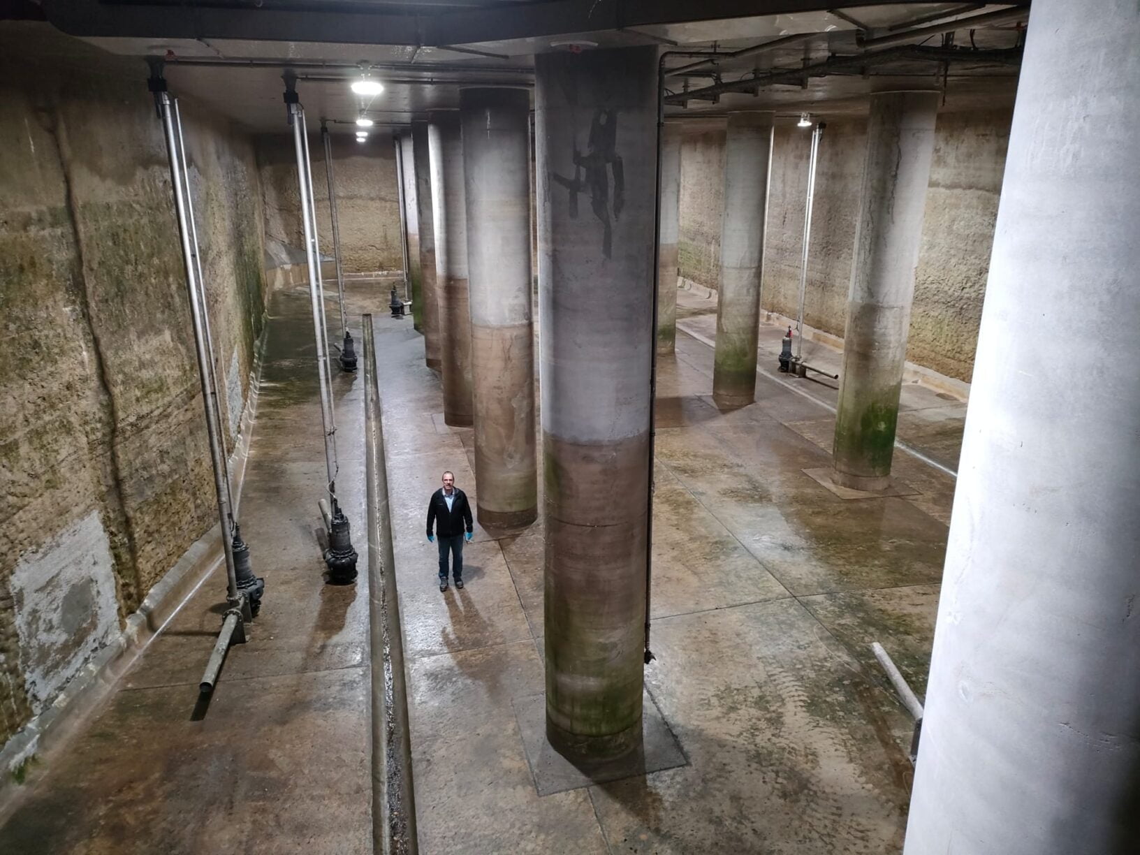 Markus Flückiger vom Tiefbauamt im riesigen Regenrückhaltebecken in der Nähe des Inselspitals (Foto: Rabe Info).