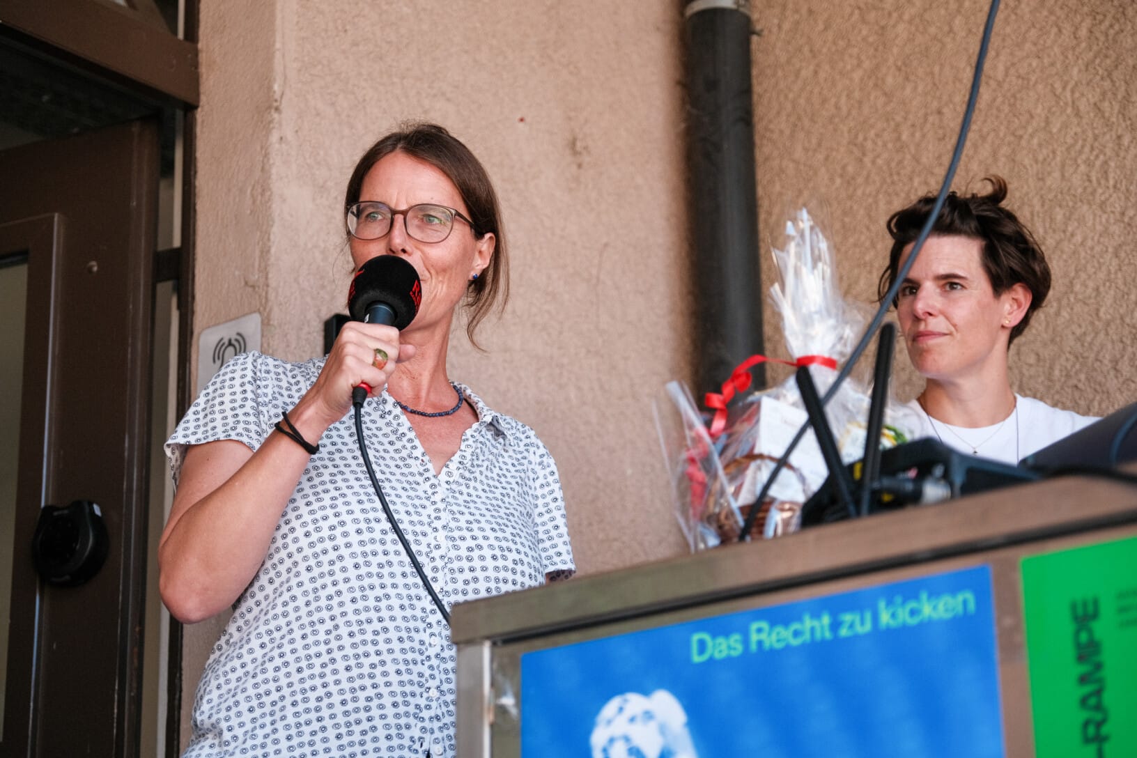 Die beiden sprachen auch über die rechtliche Dimension, auf die der Titel verweist. Das Recht zu kicken sei zwar nirgends explizit festgehalten, es lasse sich aber ableiten von den Statuten der Verbände, erklärte Marianne Meier. «Es ist nicht so, als müsste man jetzt dankbar sein, dass Frauen auch kicken dürfen – das ist eine Bringschuld, die wir einfordern können», so Meier.