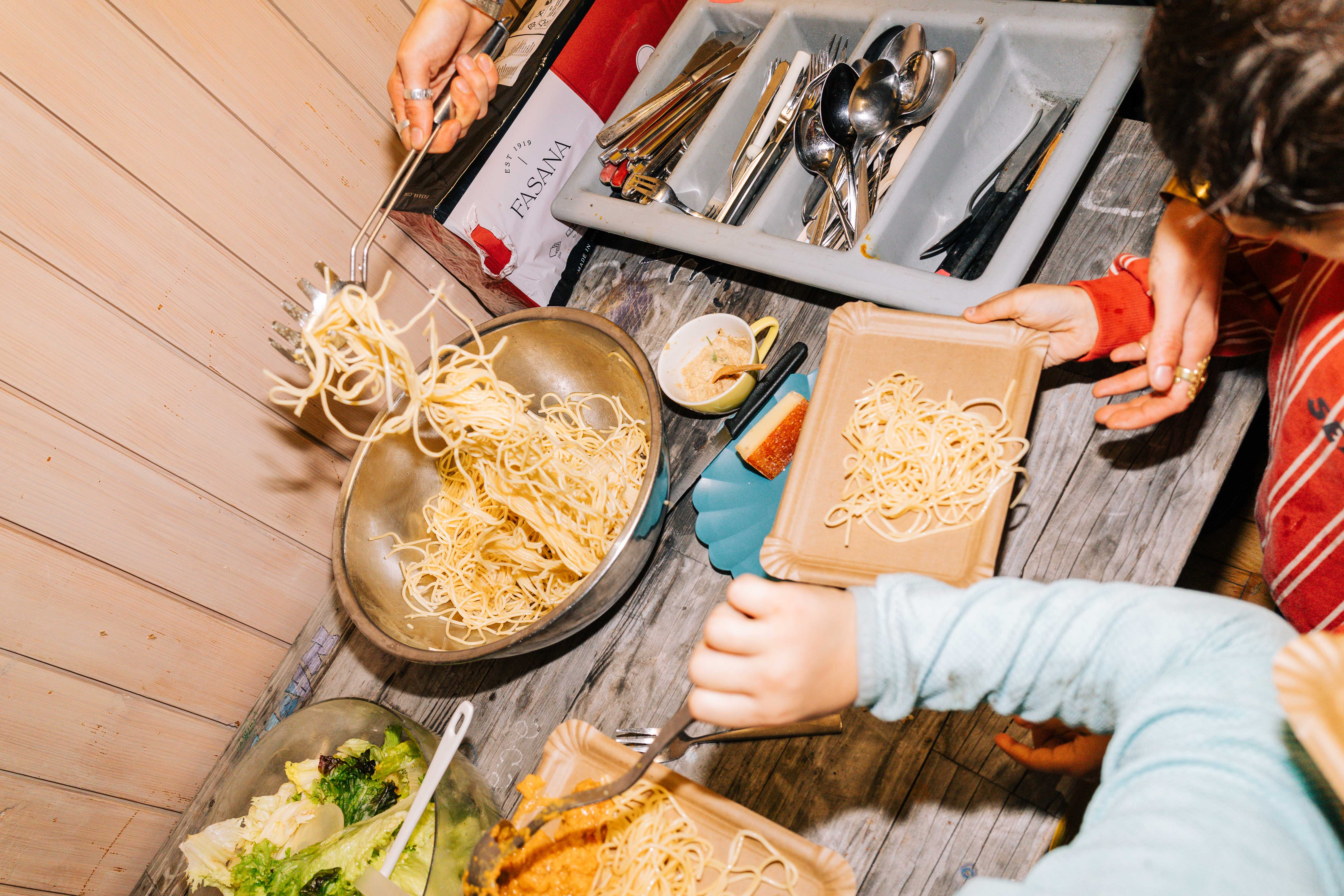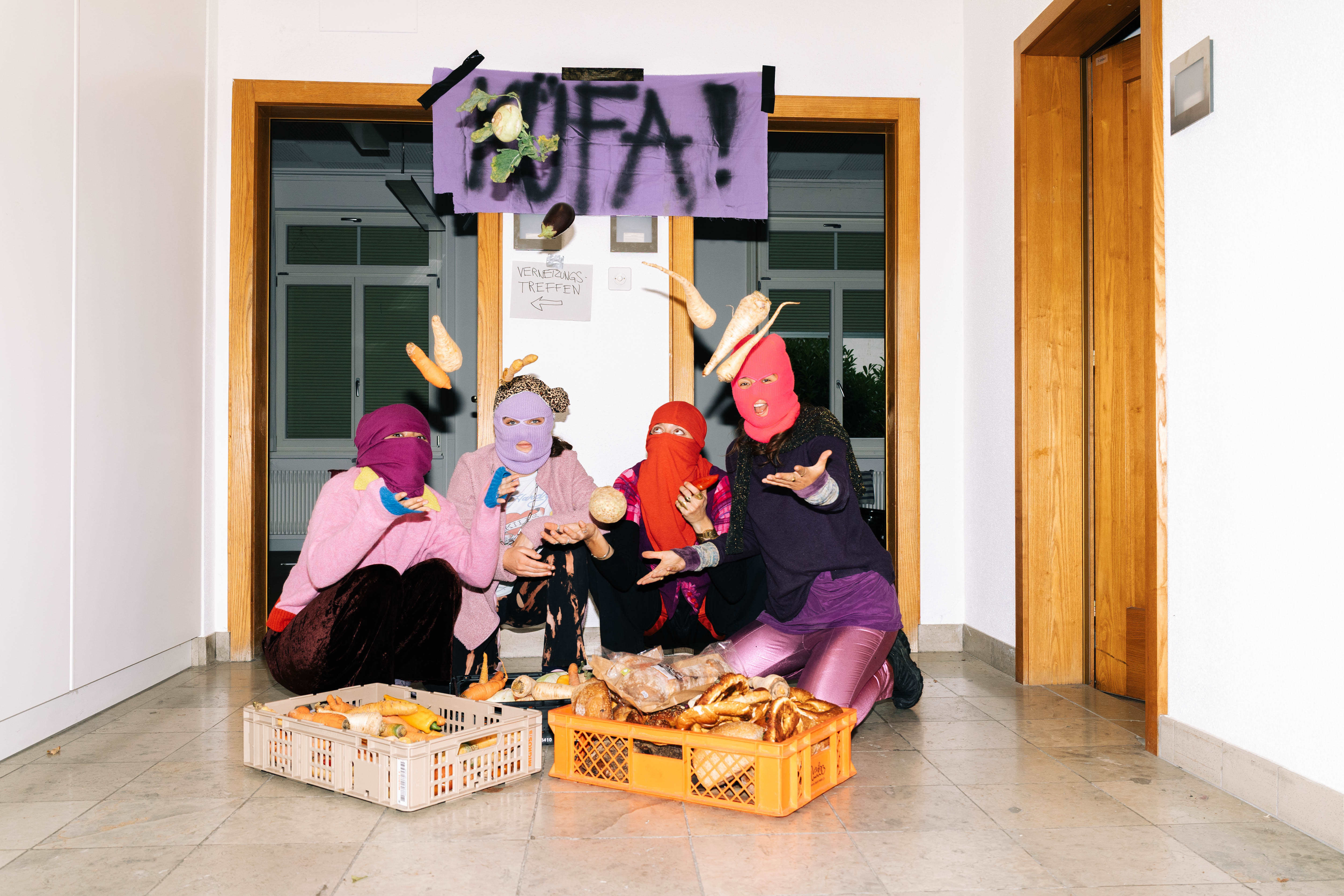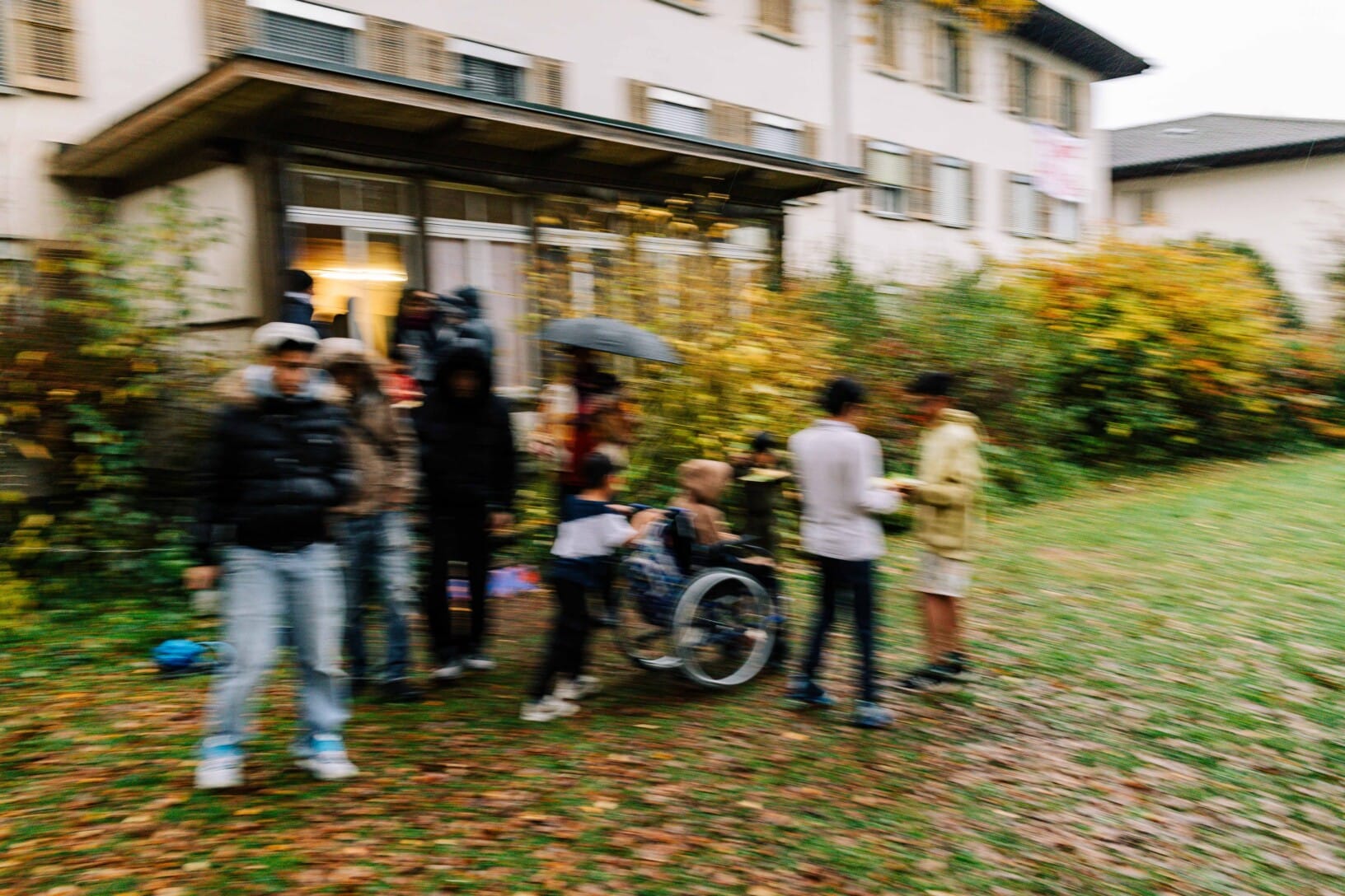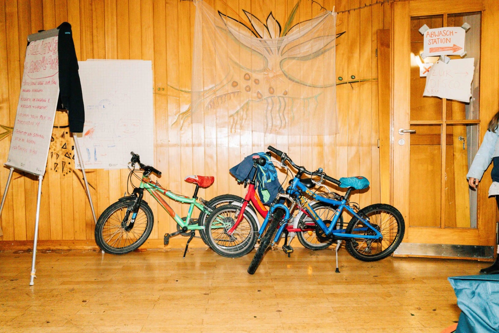 Auch im Inneren des Gebäudes fallen die vielen Kinder auf. Sie laufen johlend im Haus umher, bedienen sich am Buffet und fragen die Besetzer*innen, ob sie ihnen beim Aufstellen der Musikanlage helfen können. Die meisten von ihnen kommen von der nahe gelegenen Kollektivunterkunft für Asylsuchende.