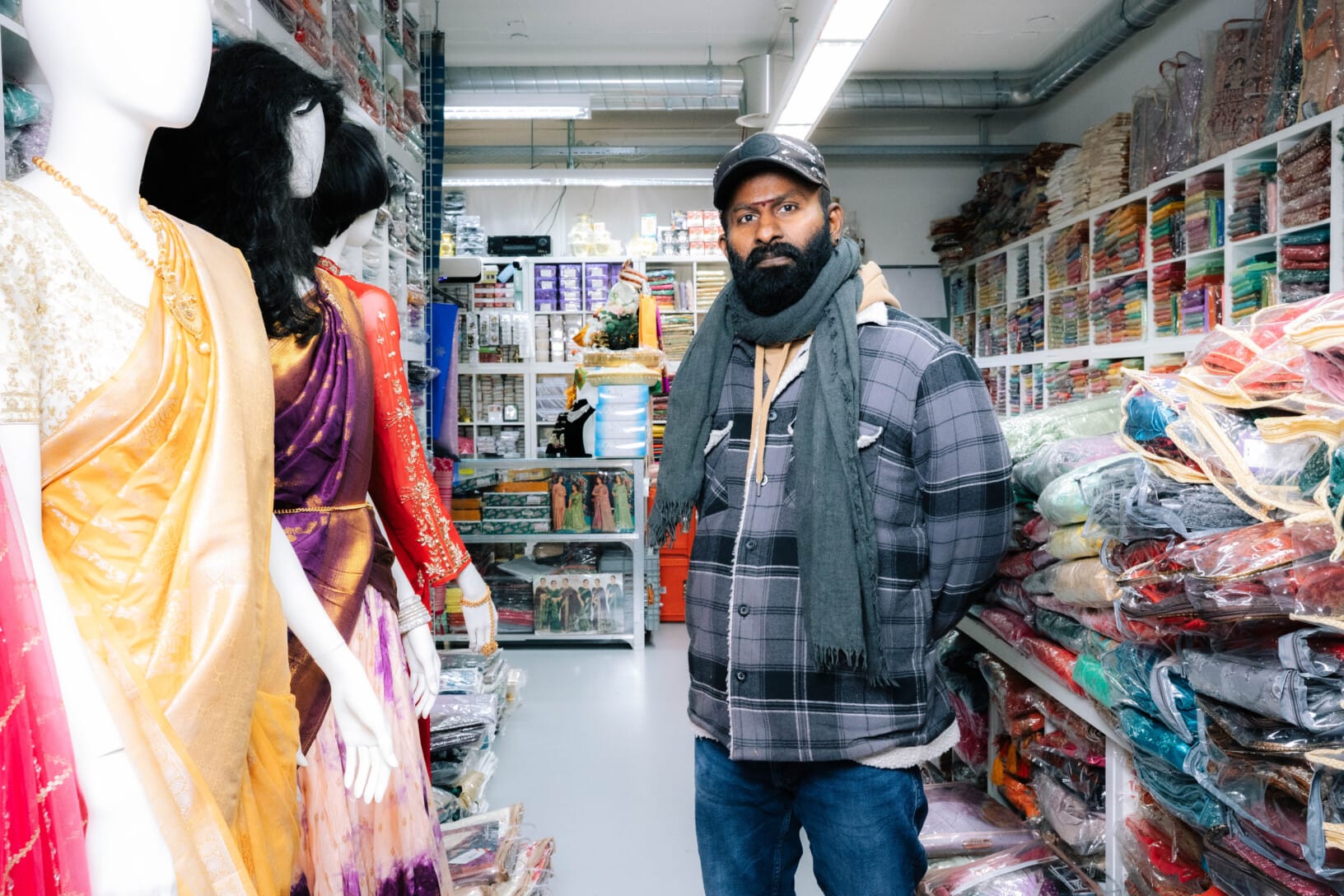 Es sei ein unabhängiger Job, der Laden sei erfolgreich, erklärt er stolz. Etwa 10’000 Kleidungsstücke verkauft er hier im Jahr, vor allem an die tamilische Community, zu der er selber gehört. Aus der ganzen Schweiz und auch aus Deutschland reist seine Kundschaft an. Für ihn ist der Standort in der Hauptstadt und in Bahnhofsnähe ein Glücksfall. Einzig das Internet bereitet ihm Probleme: Verkäufe über Social Media seien eine harte Konkurrenz. Wir sprechen den Ladeninhaber auf einen kleinen Schrein mit einer Figur des Gottes Ganesha an: Dieser sei für das tägliche Gebet da oder für die Momente, in denen die Zeit fehle, um in den Tempel zu gehen. Eigentlich habe er ihn gekauft, um ihn im Laden zum Verkauf anzubieten. Aber niemand habe ihn kaufen wollen, und darum gehöre er jetzt hierhin. Not for sale.