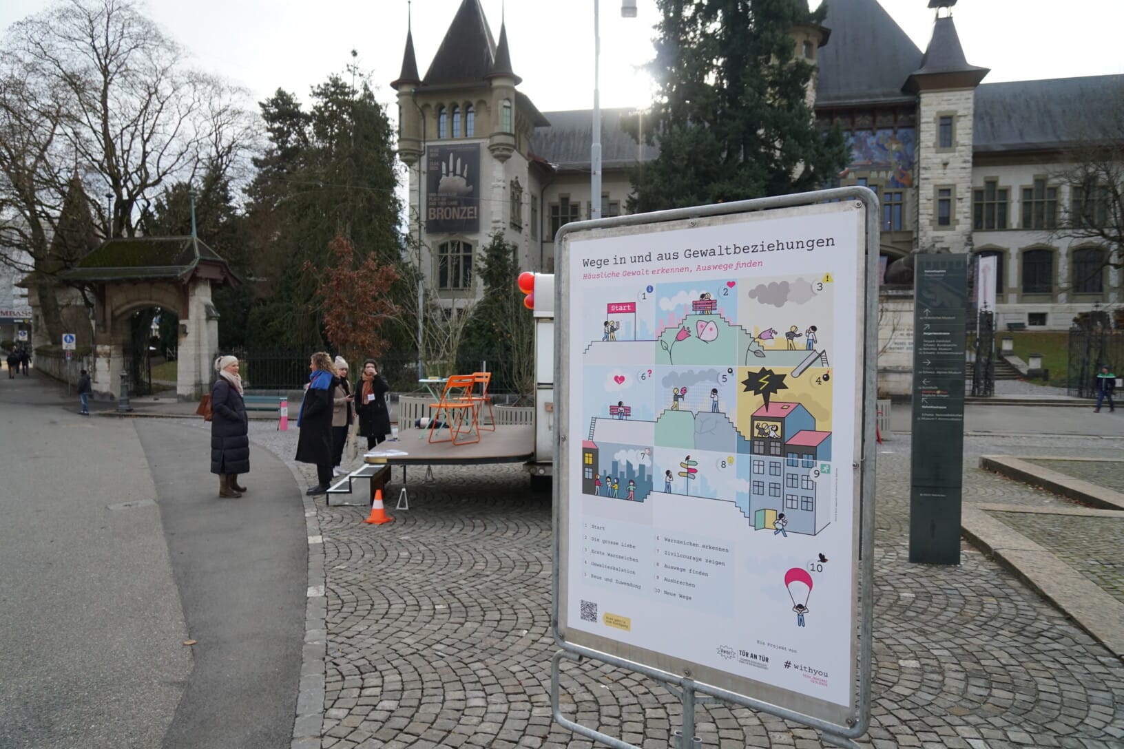 Der Workshop ist ein Anlass von Tür an Tür – einem Stadtberner Projekt, das die Nachbarschaft für die Thematik häusliche Gewalt sensibilisieren und Handlungsmöglichkeiten aufzeigen soll. Nachdem das Projekt von 2020 bis 2023 im Stadtteil Bümpliz-Bethlehem erstmals durchgeführt wurde, zog es 2024 weiter in den Stadtteil 4 Kirchenfeld-Schosshalde.