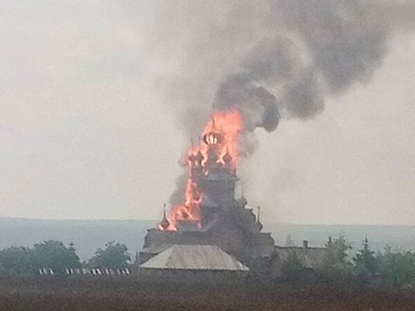In Flammen: Das Svjatohirsk-Höhlenkloster im Gebiet Donezk, östlich der Ukraine. (Foto: zvg).