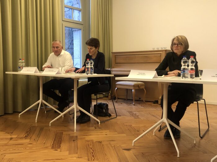 Ruedi Heim, Franziska Teuscher, Claudia Hänzi (v.l.) an der Pressekonferenz (Foto: Rabe Info).