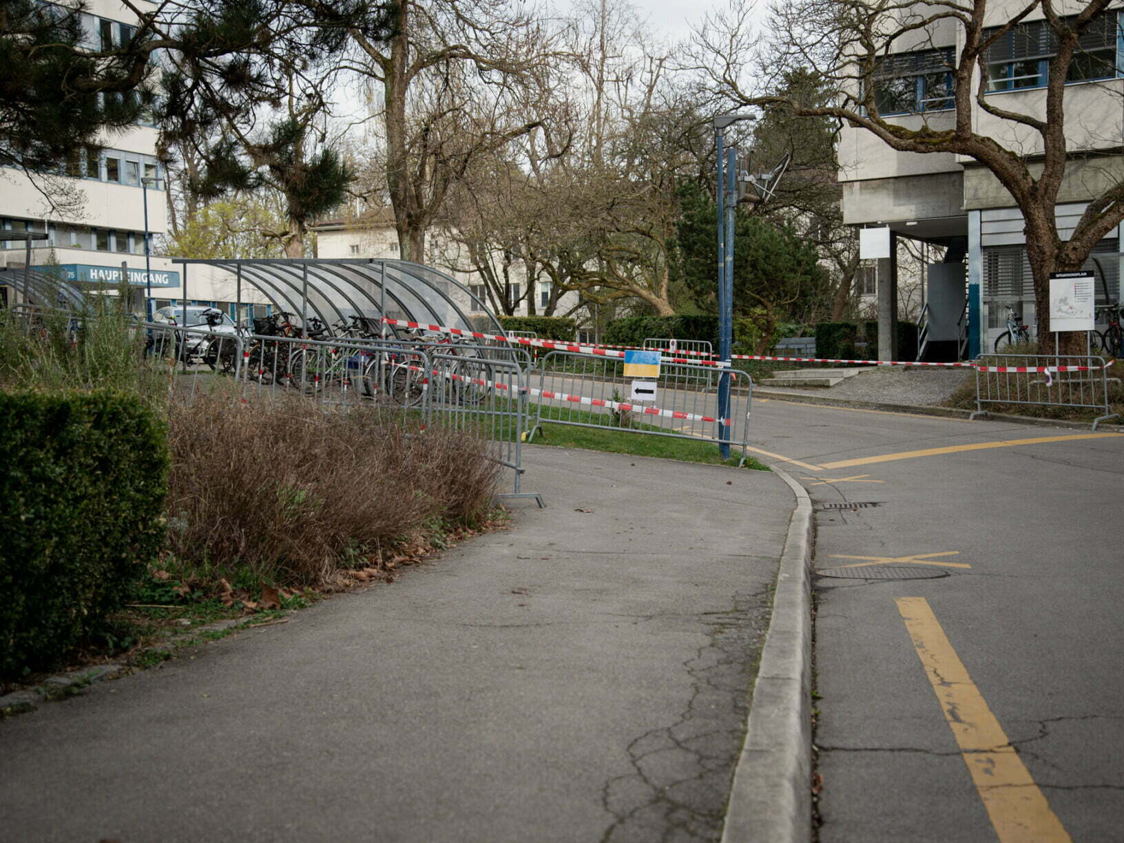 Beim Bundesasylzentrum im ehemaligen Zieglerspital erfolgt die Anmeldung der Ukrainer*innen über einen separaten Eingang. (Foto: Noah Pilloud)