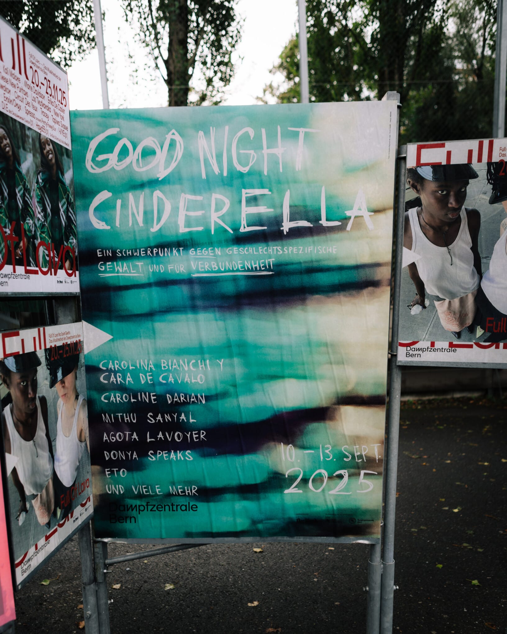 Die Dampfzentrale holt das Stück nun nach Bern – dem Team war es jedoch wichtig, die Performance nicht einfach für sich allein stehen zu lassen. «Wir wollen das Publikum begleiten, verschiedenen Emotionen Platz bieten und den grösseren Kontext thematisieren, in dem sich die Performance bewegt», so Paula Steck, die zusammen mit Fabienne Amlinger, Anneli Binder und Alessandra von Aesch den mehrtägigen Schwerpunkt «Goodnight Cinderella» erarbeitete.