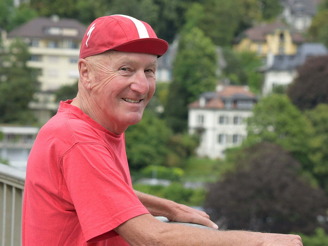 Im nächsten Moment höre ich eine leise, beruhigende Stimme, die sagt: «Grüss Gott, sind Sie der Journalist, mit dem ich gestern telefoniert habe?» Ich bejahe seine Frage und richte meinen Blick auf. Vor mir steht ein älterer Mann in rotem T-Shirt, kurzer blauer Hose und der roten Velokappe. «Freut mich, dass es geklappt hat», erwidere ich sein Lächeln und reiche dem durchtrainierten Senior mit den strammen Waden die Hand. «Lassen Sie uns hineingehen, da sind wir ungestört und können plaudern», bittet mich Dres Balmer, ihm zu folgen.