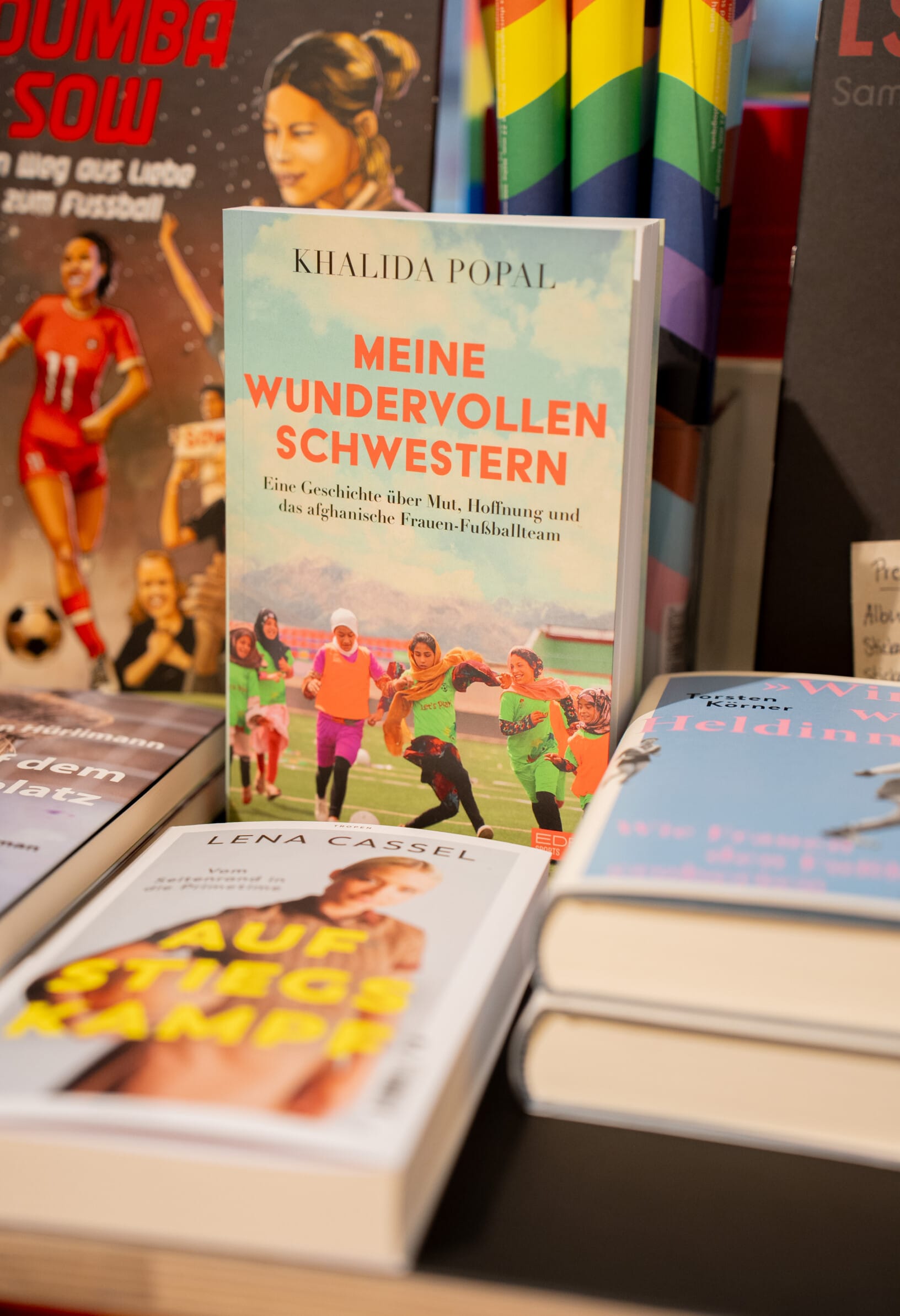 Wer die Buchhandlung in der Herrengasse betritt, mag zunächst leicht irritiert sein. Auf der einen Seite der Buchhandlung Weyermann, zu der QueerBooks gehört, liegen Kristalle, Engel und Bücher wie «Orakel für dein inneres Kind» in der Auslage. Auf der anderen Seite Regenbogenbuttons, theoretische Werke von Feminist*innen wie bell hooks und queere Sachliteratur zu Nonbinarität oder Homosexualität.