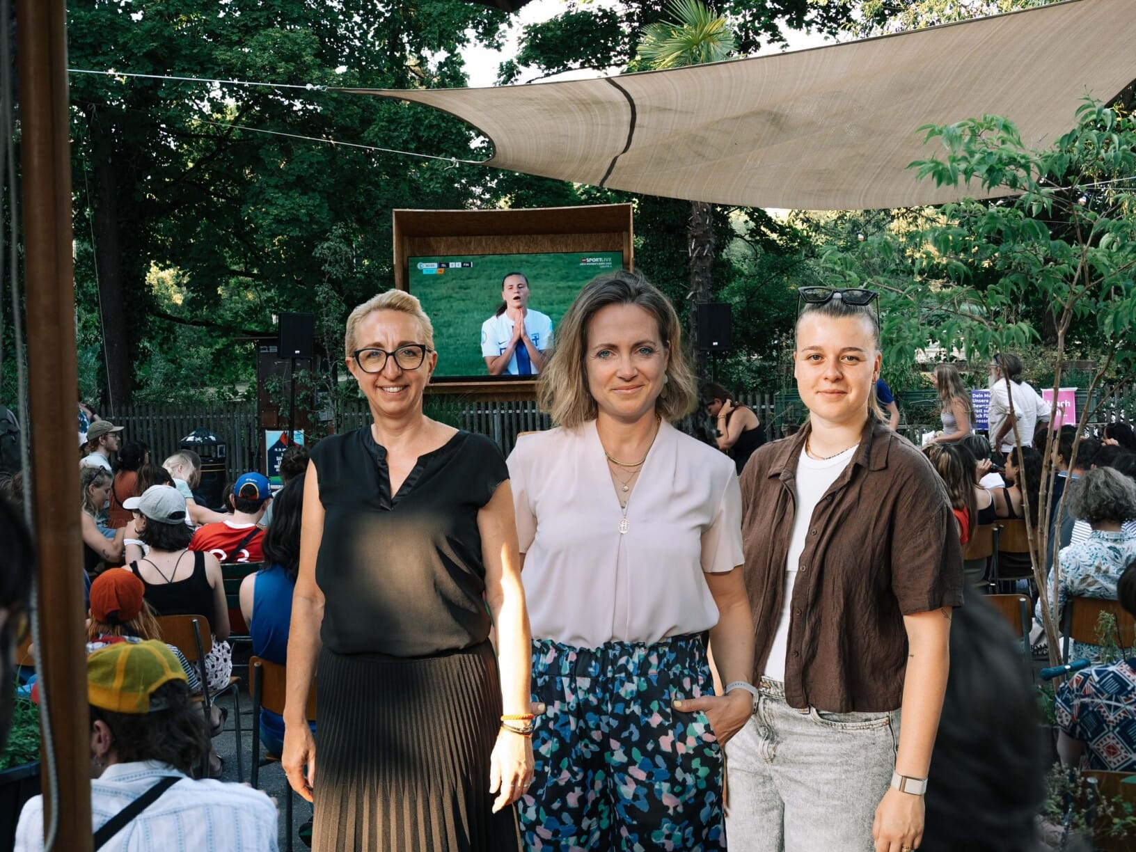 Auf dem Podium kurz vor dem EM-Eröffnungsspiel im Café Riva zeigt sich, wie viel es im Frauenfussball noch zu tun gibt.
