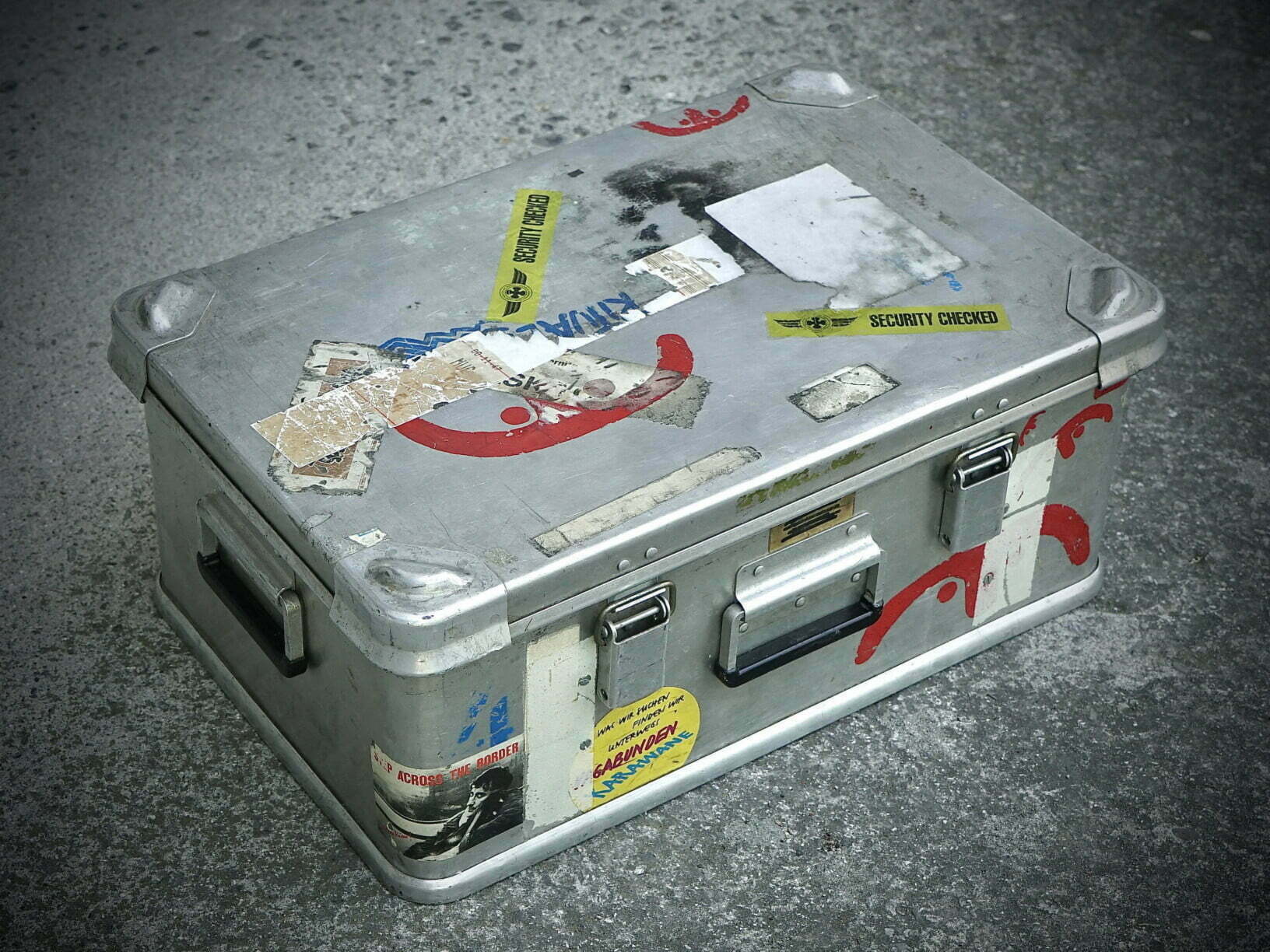 Die hier abgebildete Aluminiumkiste von «Zarges» aus Weilheim in Oberbayern (noch heute Hersteller bester Ware) wurde von verschiedenen Menschen «besessen». Gekauft hat sie der deutsche Filmemacher Werner Penzel in den 1970er-Jahren, um seine 16-mm-Filmausrüstung solide zu verpacken, damit sie auch auf holprigen, feuchten, oder staubigen Reisen geschützt blieb. Die Kiste und die darin transportierte Filmkamera, eine Eclair ACL, und einiges an Zubehör und Objektiven ist heute ein Bestandteil der grossen Gerätesammlung der Kinemathek Lichtspiel.