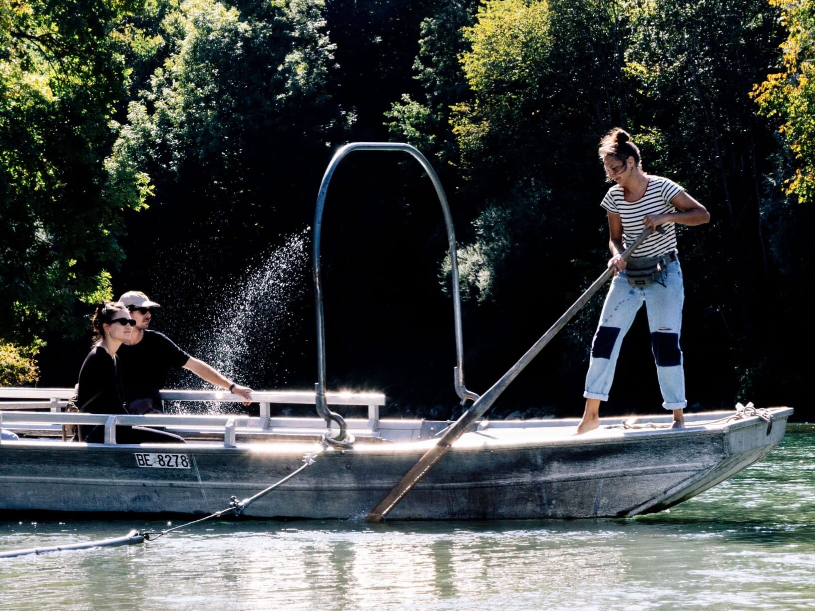 Fährfrau Nadine Geissbühler befördert beim Zehendermätteli Gäste über die Aare. David Fürst hat sie an einem Sonntagmorgen begleitet.