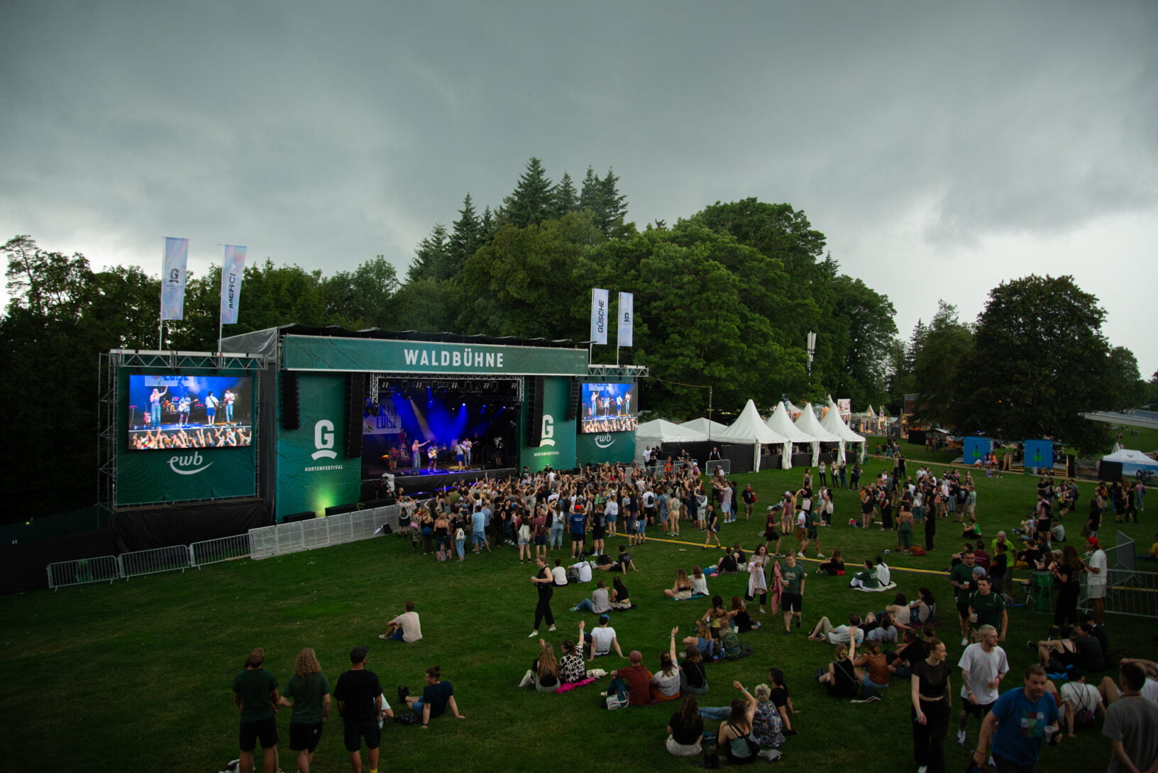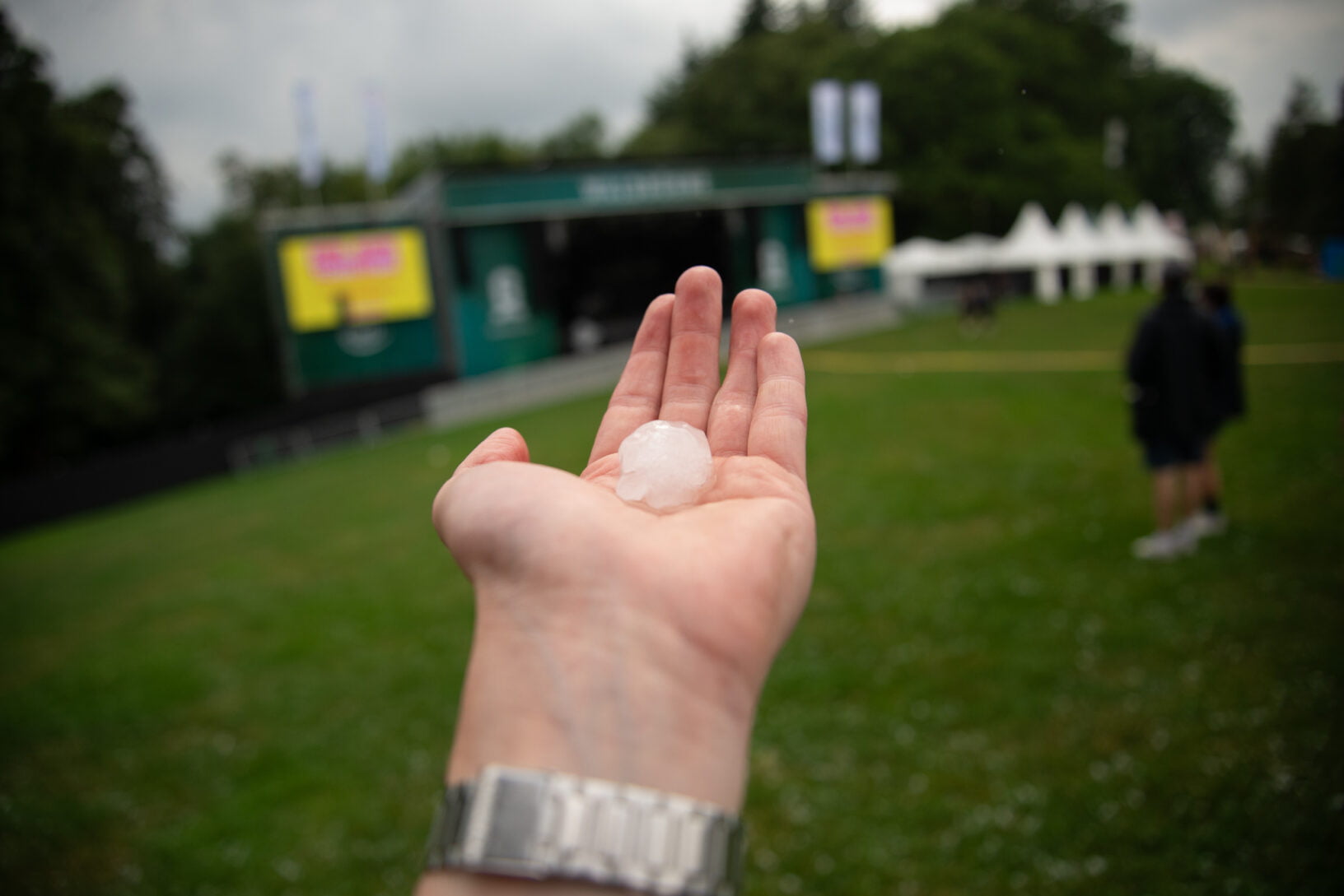 Auf der Waldbühne eröffneten Fräulein Luise das diesjährige Gurtenfestival. Der schweizerdeutsche Indie-Pop eignet sich gut als Festival-Opener, doch schon bald zieht eine grosse Gewitterzelle über den Hausberg. Schutz vor den teils tischtennisballgrossen Hagelkörnern bietet der Soundgarden, wo Calucci aktuellen französischen, englischen und schweizerdeutschen Hip-Hop auflegt. Äusserst tanzbar.
