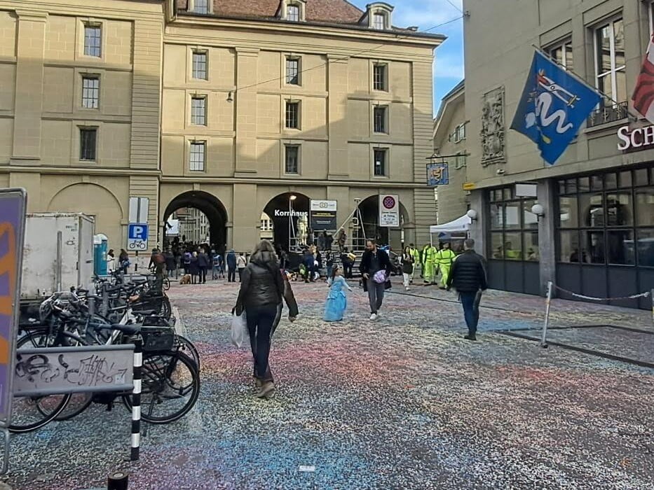 Musikfetzen von weit her laden ein zum Tanzen. Ennet der Nydeggbrücke stehen die Musiker*innen, an die untersten Häuser der Gerechtigkeitsgasse geschmiegt. Ihr Rhythmus zieht uns magisch an, lässt die roten Busse vergessen, die ihren Weg durch die Menschen suchen. Ordnerinnen der Gugge helfen ihnen dabei, bestimmt, doch freundlich.
