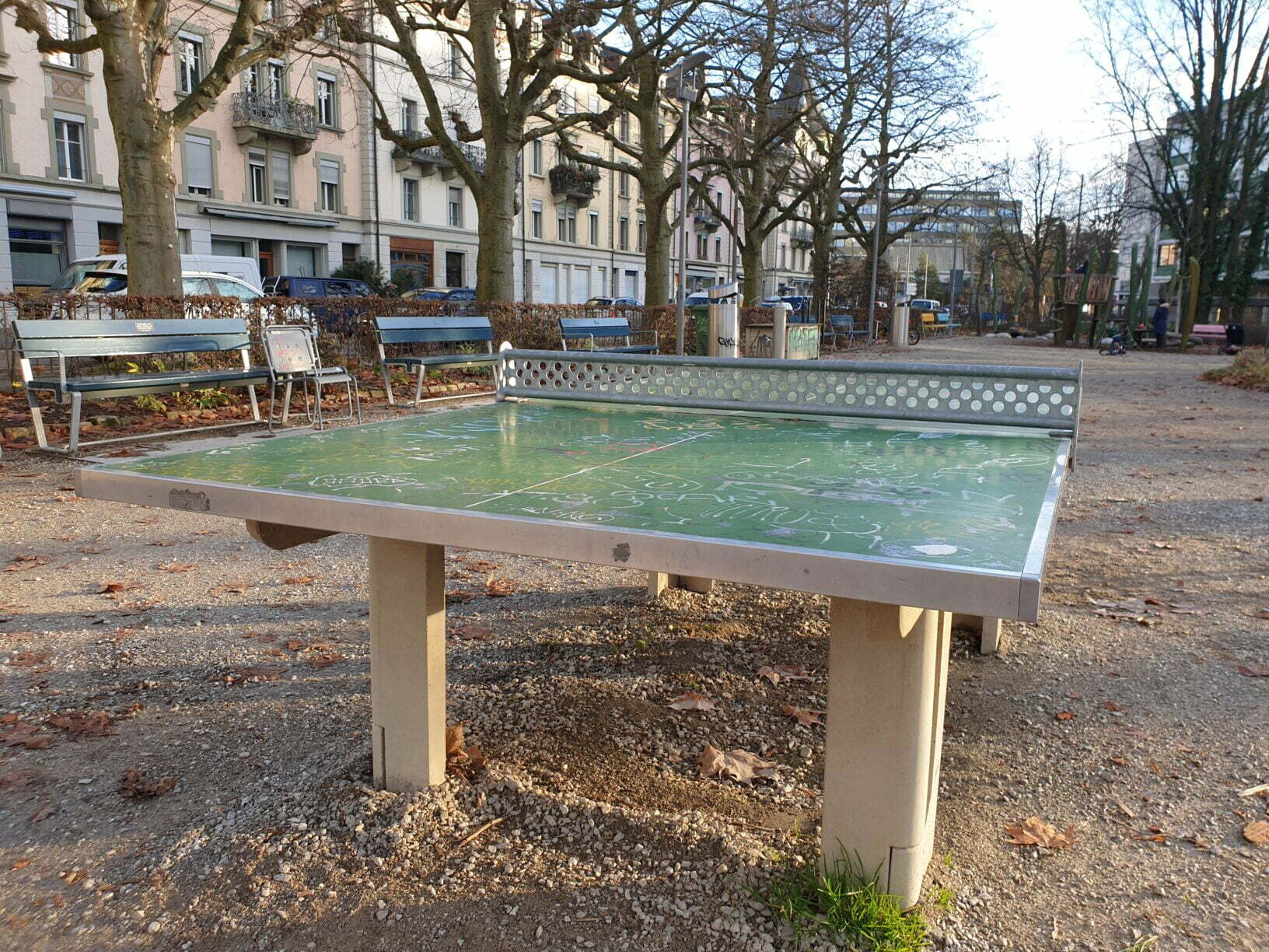 Auch im Lorrainepark findet sich einer der zahlreichen öffentlichen Pingpongtische (Foto: Janine Schneider).